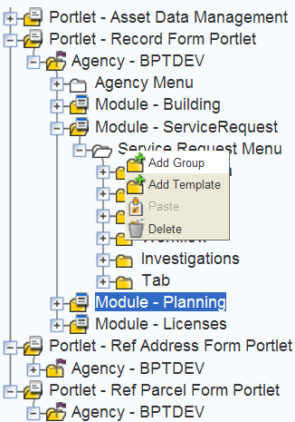 Each user performs tasks specific to the user group you assigned them to in Civic Platform. Creating and adding template menus for specific user groups helps streamline the different tasks for each user in the department. Not everyone in a user group performs the same tasks. For example, in the permit user group administrators can create two different menus with tasks specific to a permit processor and a permit inspector. Creating and adding template menus to user groups helps users navigate to task that are unique to their job and department.