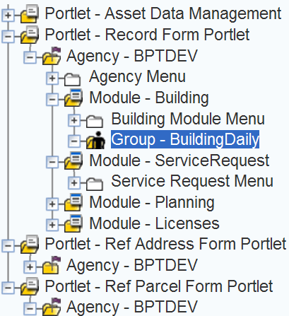 Civic Platform assigns users to a user group, which enables you to control the menus and tasks users view in each module. For example, administrators can create a menu with tasks specific to permits for users in the permit group. Menus and template menus automatically display in the module assigned to the group where you assign the menu or template menu.