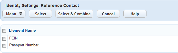 You can choose to define a number of contact fields as reference contact identifier fields. Table 1 lists your options. Civic Platform checks whether a reference contact is a duplicate of an existing active contact by comparing their identifier field values and thus prevents users from saving duplicate contacts. To set the comparison rule with the identifiers, Civic Platform joins by OR the contact fields that you add separately as identifiers, and joins by AND the fields that you combine and add as one identifier.