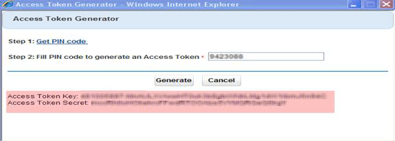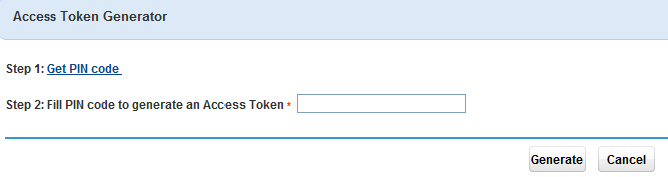 5. Enter the PIN code in the Access Token Generator page, and then click Generate.