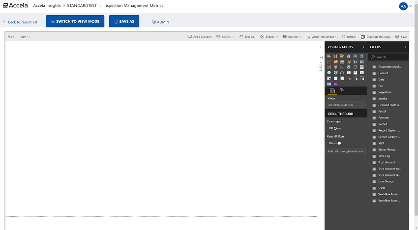 An up-to-date data dictionary of fields available for Accela Insights reports is available on the Accela Community.