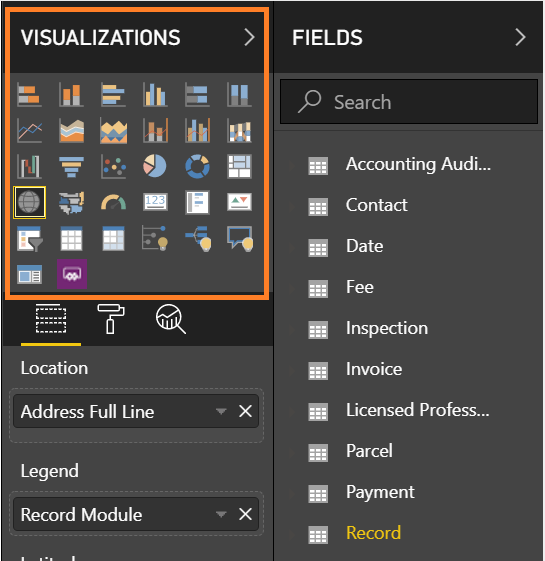 Hover over a visualization icon for a description of what it does. For more detailed descriptions of available visualization types, see https://docs.microsoft.com/en-us/power-bi/create-reports/.