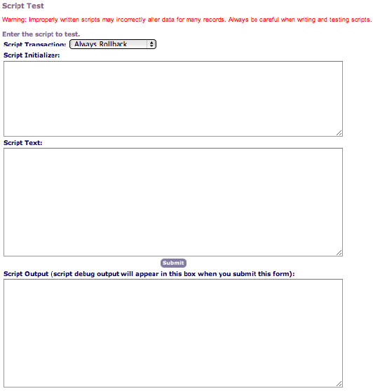 Civic Platform provides the Script Test tool for EMSE script writers. This tool enables you to enter and execute EMSE scripts with no affect on the Civic Platform database. The script writer can evaluate the output of the script to determine further development effort and testing. You can use the Script Test tool to: