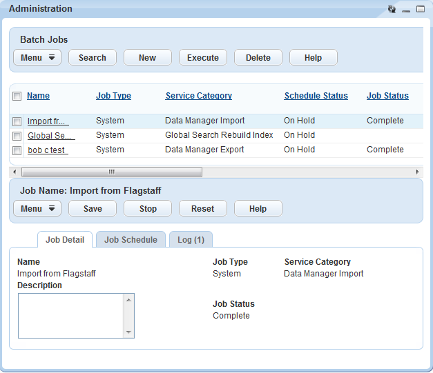 Batch jobs trigger scripts through a scheduled job in contrast to a user-invoked action. For example, you can schedule a nightly batch job, with an associated script, that looks for expired permits or licenses and updates them to an expired application and/or expiration status. At a high level batch scripts contain instructions to query records based on a specified filter, evaluate each returned record and take action for each record according to certain criteria. Civic Platform provides the Batch Job portlet (Batch Jobs Portlet) from where you can use UI controls to set parameters for the associated batch job script.