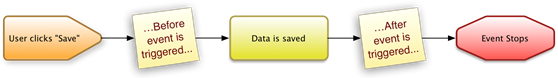 The before event occurs before you save any data to the database. Scripts associated with before event types validated data to ensure the process saves clean and accurate data to the database.