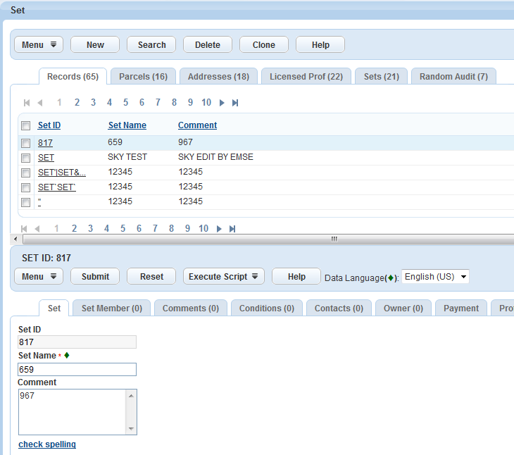 You can associate a set script to the “Execute Script” button on the Set portlet (Set Portlet). The script contains instructions to evaluate each member (record) of the selected set and take action if the member falls into the specified criteria.