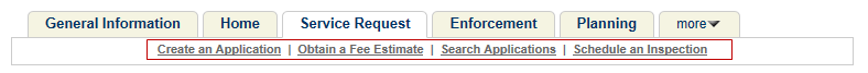Information tab bar. The module home page associated with the link contains both the My Permit List section and the General Search section, and the default search option in the General Search section is Search by Address. |