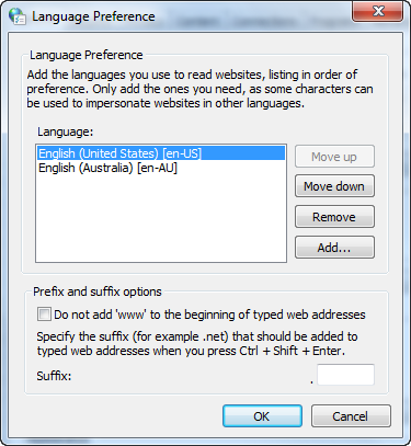 You can add multiple languages to Internet Explorer to display web page and Address bar text correctly. Keep in mind that if you installed languages in Internet Explorer, only those languages are available in websites and the address bar.