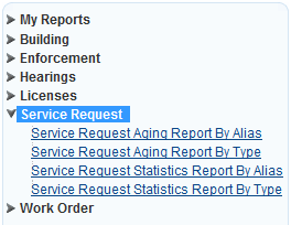 Civic Platform displays the reports available in the selected category.