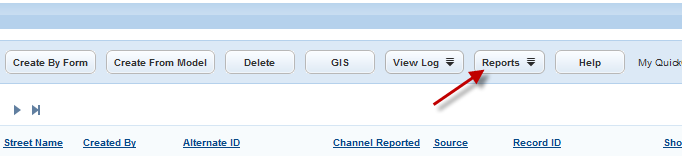 Your agency may elect to enable a Reports menu button on portlet toolbars to provide users with ready access to reports pertinent to that portlet.