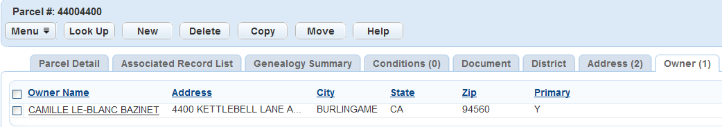 3. In the parcel detail form portlet, click the Owner tab.